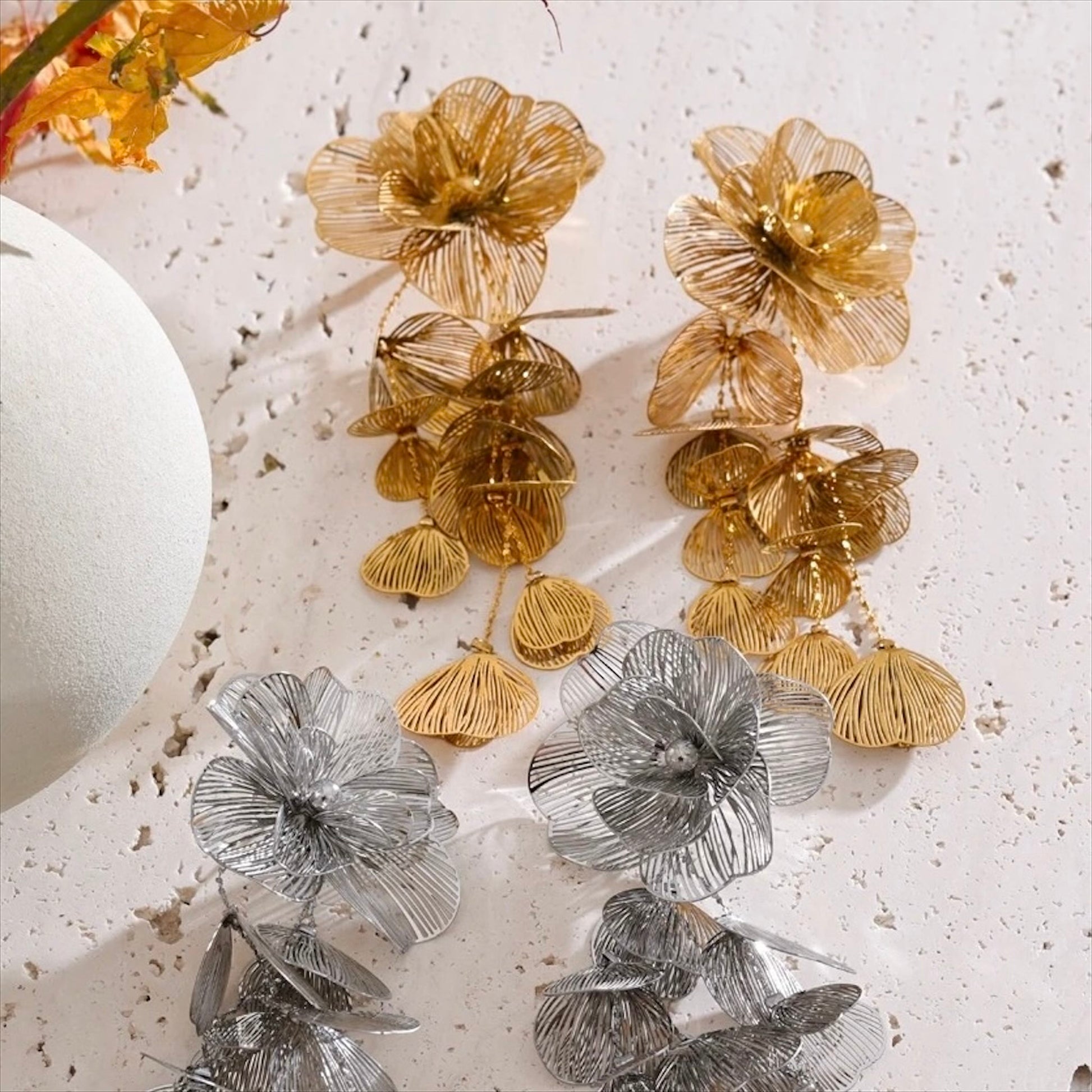 Apportez une touche spectaculaire et moderne à votre style avec ces boucles d’oreilles fleurs ajourées, véritables pièces statement idéales pour sublimer votre visage lors de toutes vos occasions. Leur design aérien, à la fois imposant et délicat, s’inspire de l’élégance sculpturale des pétales sophistiqués, pour un rendu raffiné et inoubliable.
