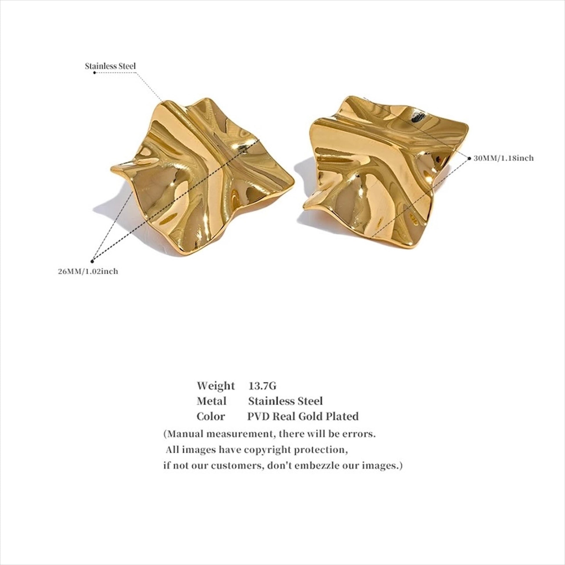 Ajoutez une note moderne et audacieuse à votre style avec ces boucles d’oreilles carrées à l’effet froissé, véritables pièces statement pensées pour illuminer le visage avec sophistication. Leur design sculptural se distingue par une surface irrégulière et miroitante, captant la lumière à chaque mouvement.
