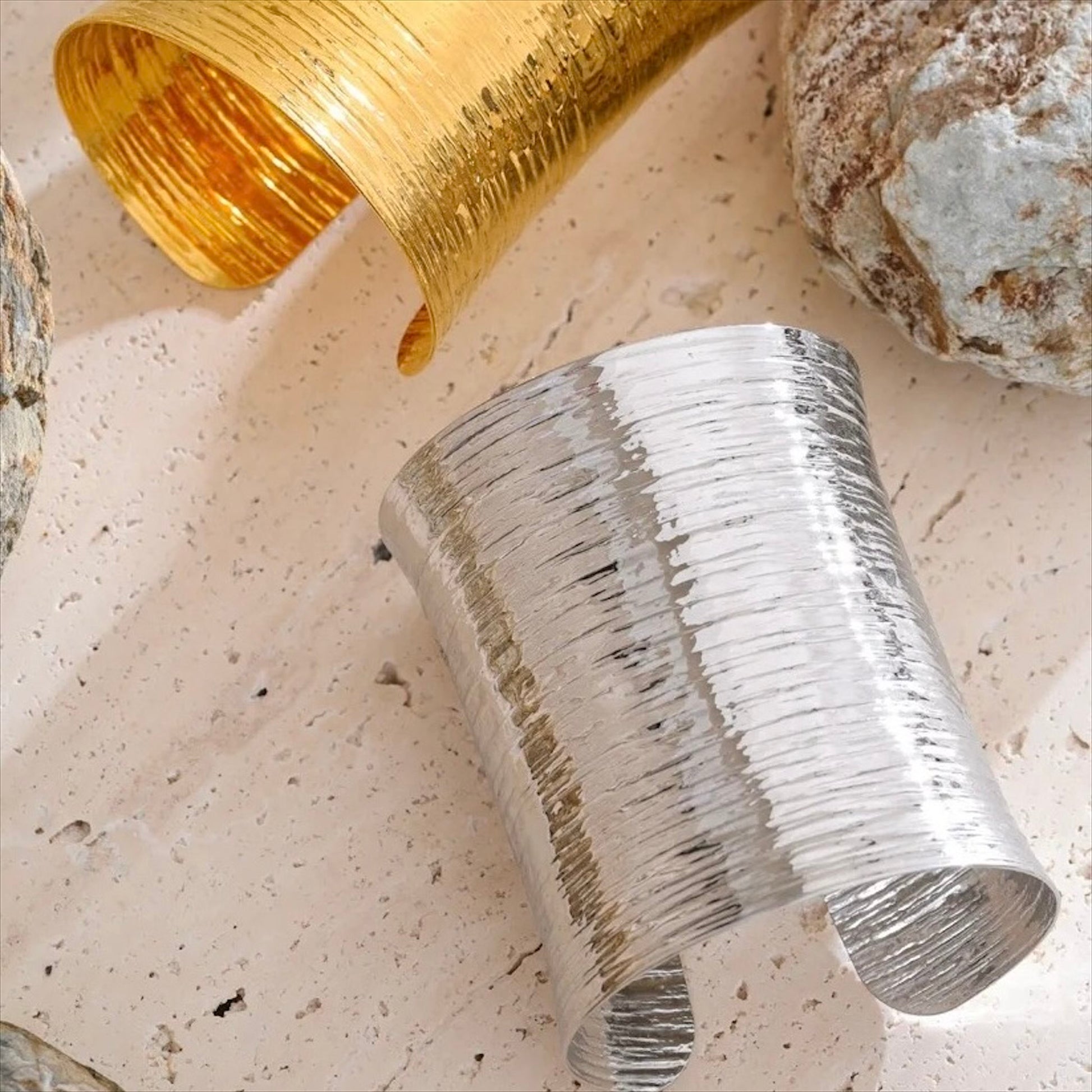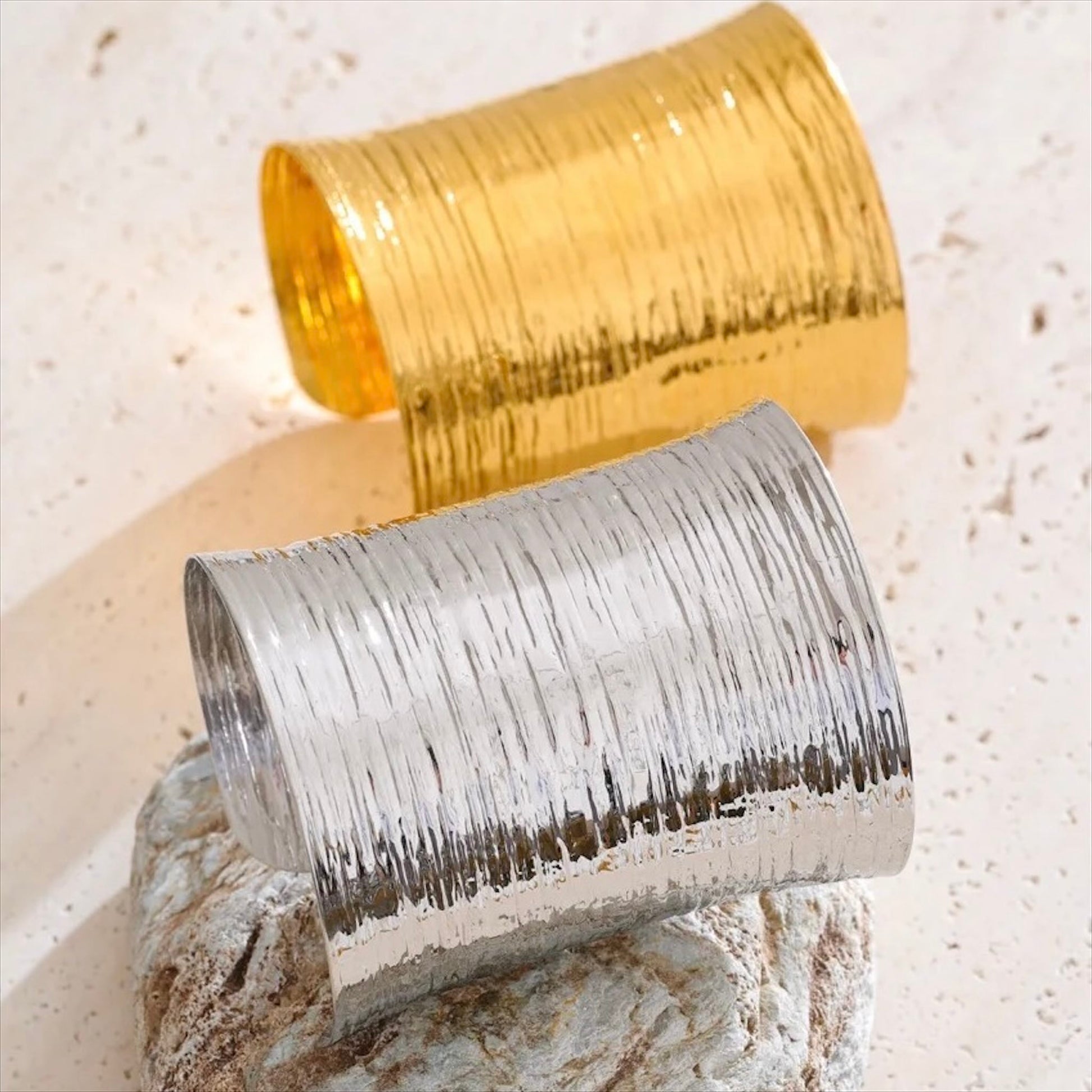 Bracelet Manchette Martelé – Acier Inoxydable Doré ou Argenté